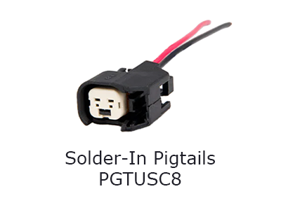 This set of injectors requires you to change the injector plug on the wiring harness in your car. This can be done by soldering in the pigtails (PGTUSC8) to replace the plugs currently on your harness, or you can choose to purchase the optional plug-n-play adapters (PADPUtoJ8) which will convert from the type of plugs on these injectors to the plugs on your harness without any need for cutting or soldering.