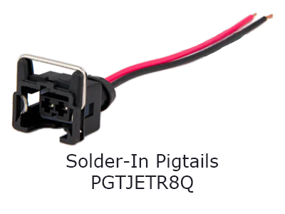 This set of injectors requires you to change the injector plug on the wiring harness in your car. This can be done by soldering in the pigtails (PGTJETR8Q) to replace the plugs currently on your harness, or you can choose to purchase the optional plug-n-play adapters (PADPJtoU8) which will convert from the type of plugs on these injectors to the plugs on your harness without any need for cutting or soldering.